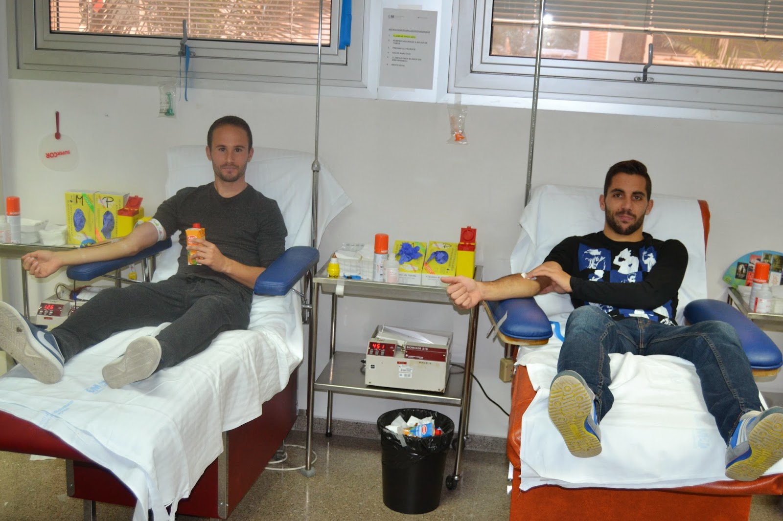 | Álvaro y Valera, jugadores del Leganés, donando sangre |