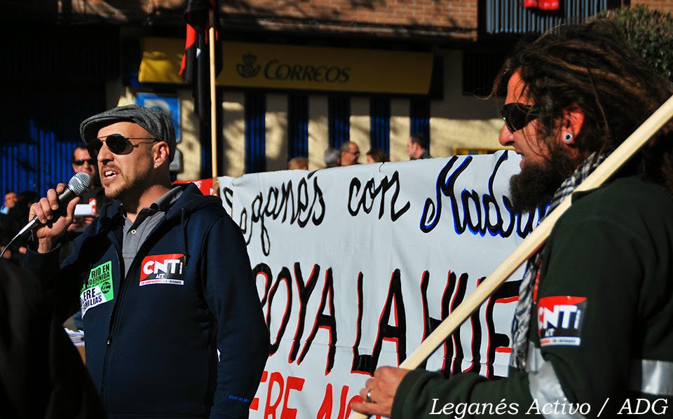 AROA DÍAZ / Sindicatos de Leganés han realizado un acto de apoyo a los trabajadores de Madrid Río afectados por un ERE causado tras el rechazo de UTE a subrogar a la mitad de la plantilla. Una situación que, en palabras de Santiago de la Iglesia, «tiene muchas similitudes con el vivido en Leganés«.