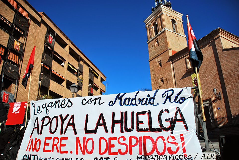 Este domingo, el sindicato CNT y el Comité de Empresa de Helechos han apoyado en un acto simbólico, la lucha de los trabajadores de limpieza viaria de Madrid Río, que cumplen su tercera semana de huelga indefinida.