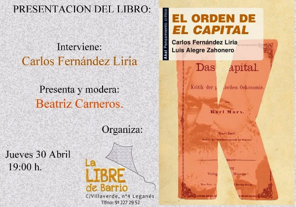 – Saliendo de esta celebración, la Libre de Barrio presentará, a las 19:00 horas, el libro ‘El odien de El Capital’ de Carlos Fernández Liria y Luis Alegre Zahonero.