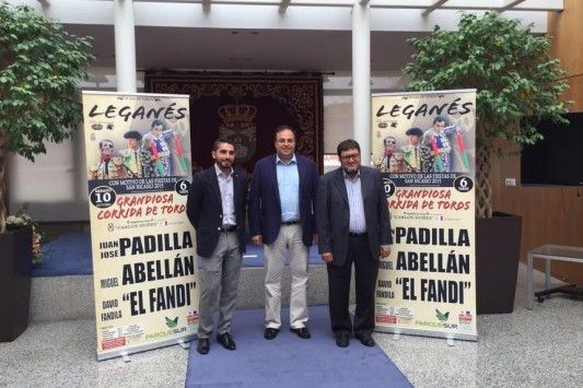 El alcalde de Leganés, Santiago Llorente, ha presentado hoy el cartel de la corrida de toros que se celebrará este sábado en la plaza de toros ‘La Cubierta’ con motivo de las próximas fiestas de San Nicasio. En el festejo, que comenzará a las 18:00 horas, se anuncian Juan José Padilla, Miguel Abellán y David Fandila, El Fandi. Los diestros estoquearán una corrida de Carlos Núñez.