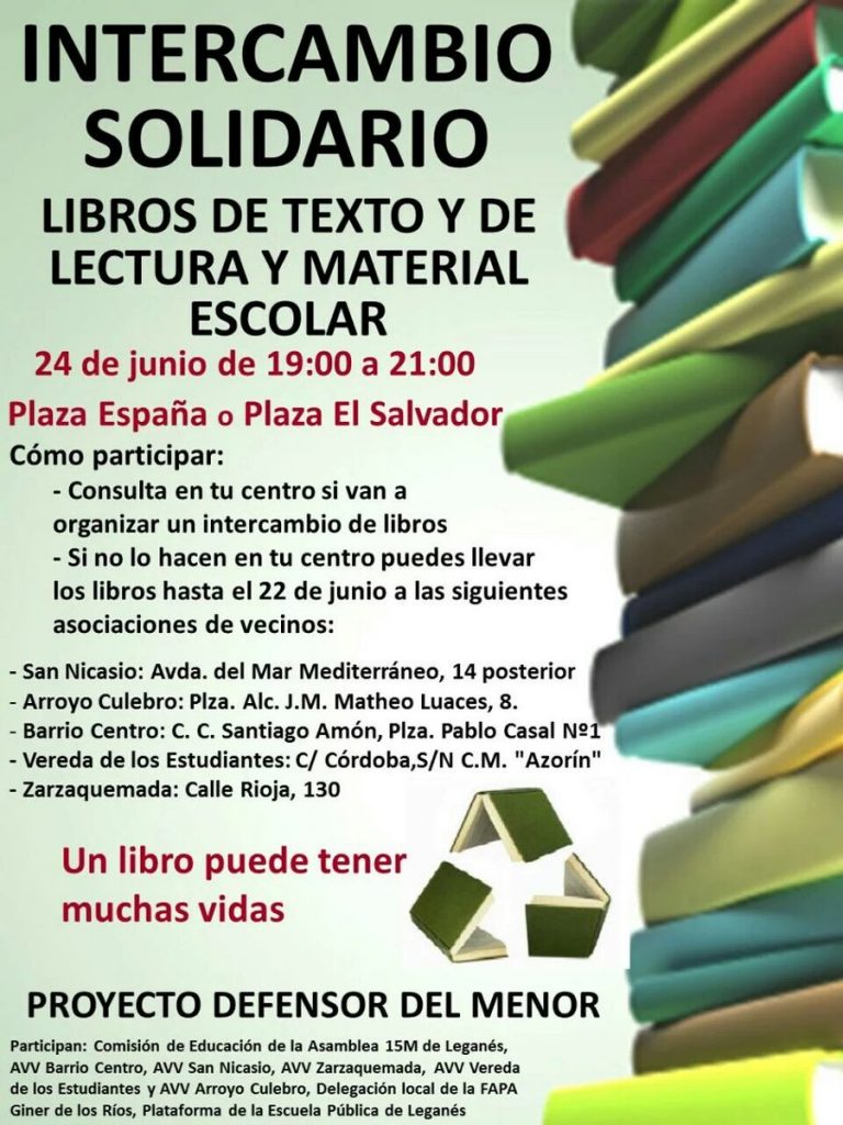 La Comisión de Educación de Leganés organiza un nuevo intercambio solidario de libros de texto para los escolares de cara al nuevo curso escolar. También se admitirán libros de lectura y material escolar. Se recogerán hasta mañana, 22 de junio, en las diferentes asociaciones colaboradoras.