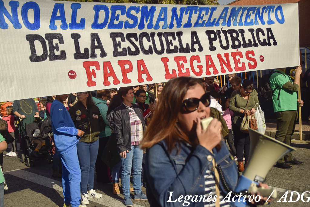 Allí, padres y profesores de centros de la ciudad de Leganés denunciaban las carencias de los centros. «Situación bastante dramática en el CEIP Concepción Arenal ya que nos denegaron abrir un nuevo aula a pesar de tener solicitudes suficientes y nos quitaron una profesora de apoyo en educación infantil«, explicaba un padre y profesor del centro. «El Director de Área Territorial [Comunidad de Madrid] nos dijo que abrir un nuevo aula sería prevaricar«.