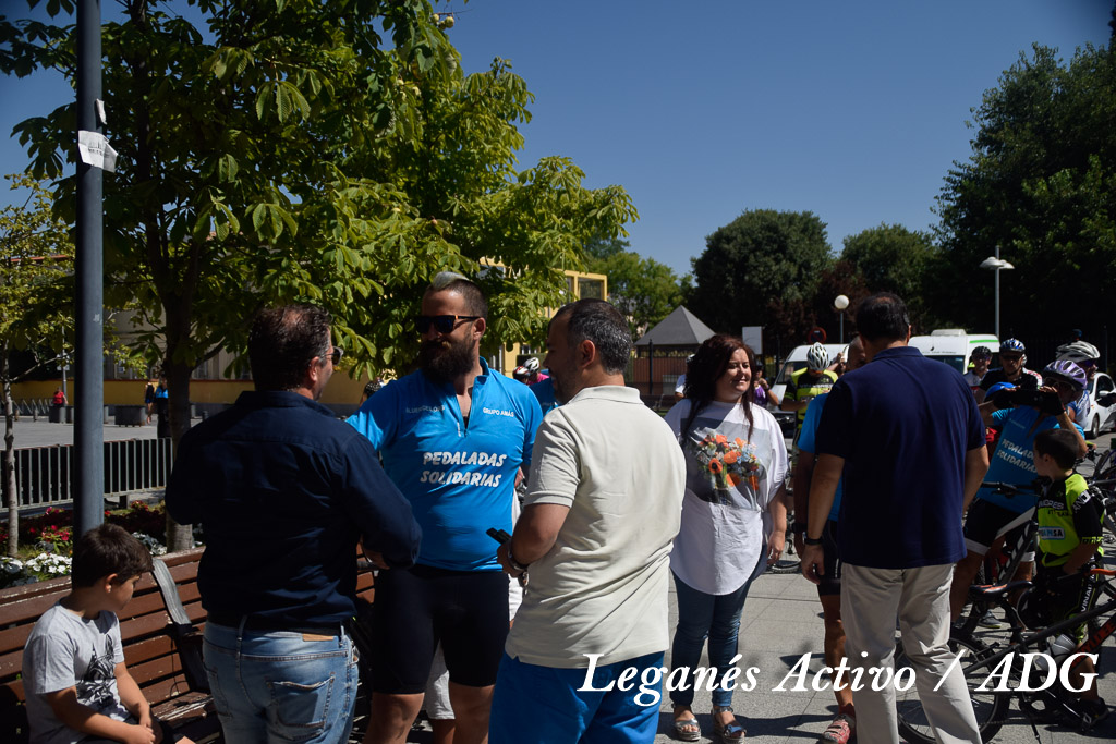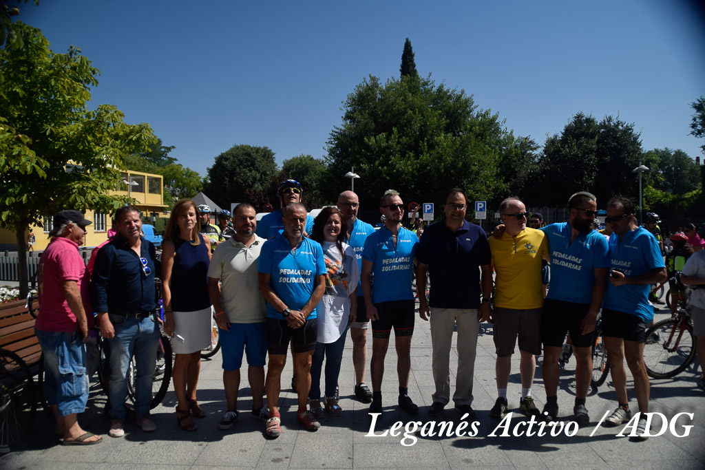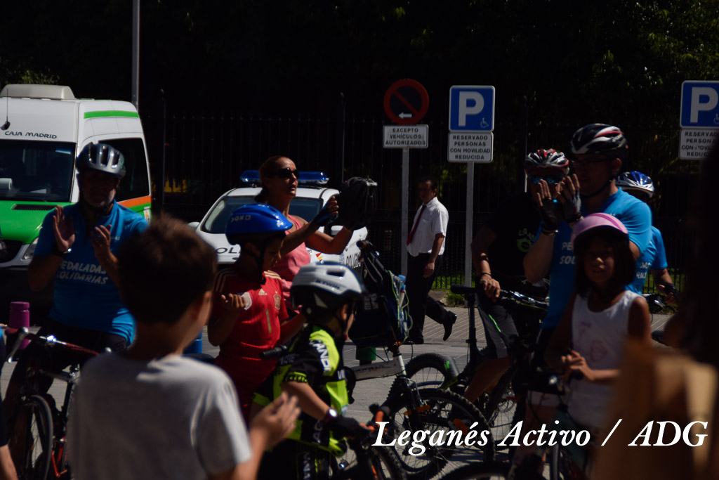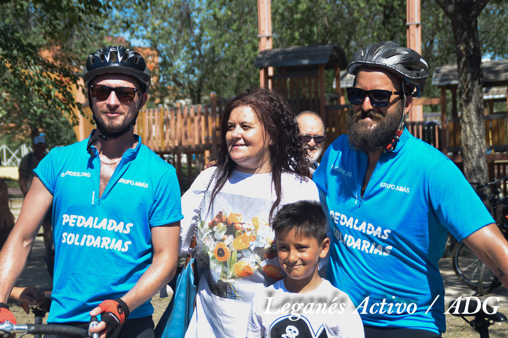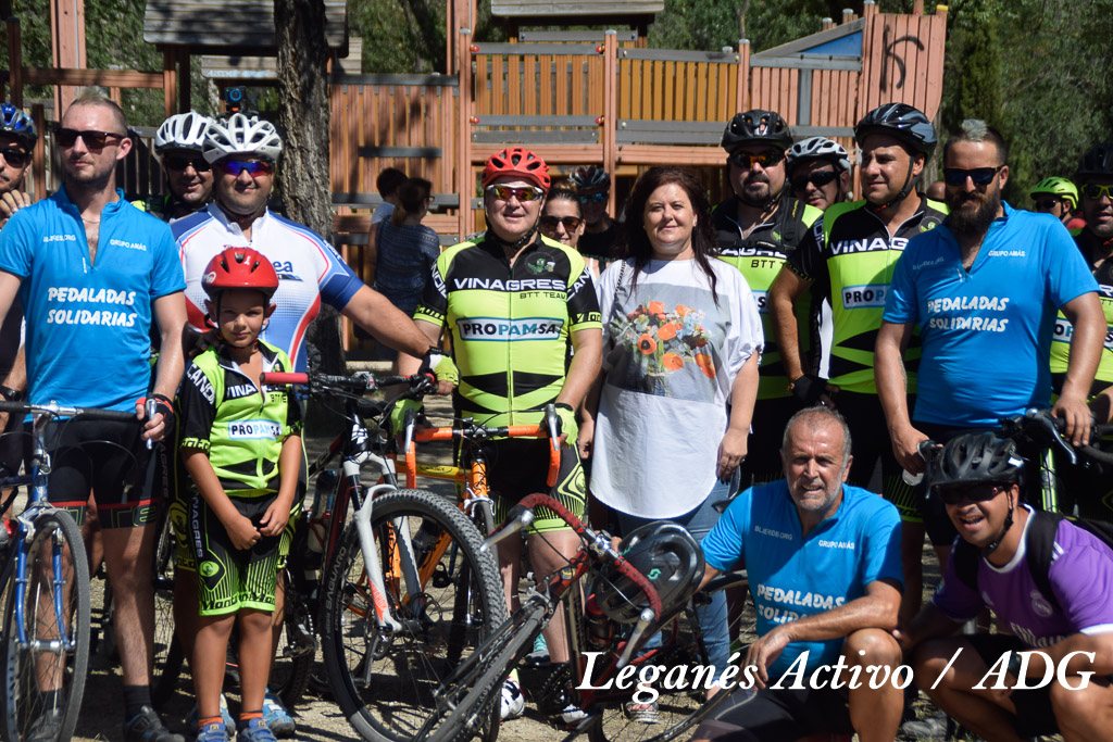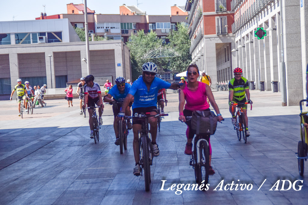 BlueRides Leganes Cardiff-1109Eran las 11:45h cuando Arturo y Monkey, después de 13 etapas, eran recibidos en el parque El Carrascal entre aplausos. Era la primera parada en Leganés. Allí, alrededor de cincuenta ciclistas les esperaban para acompañarles en la recta final. Familia, amigos y miembros de La Peña Ciclista Bermejo, el Grupo BTT Vinagres Leganés y del Grupo AMÁS, les esperaban.