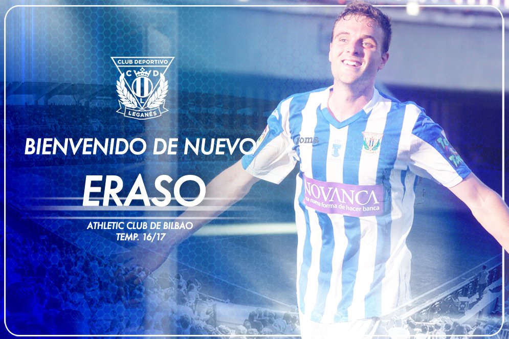 El Club Deportivo Leganés ha firmado la contratación del mediocentro Javier Eraso Goñi, de 27 años de edad, para las próximas tres temporadas. De esta forma recupera a quien fue pieza fundamental del histórico ascenso del conjunto pepinero a Segunda División. En sus dos anteriores campañas, una en Segunda División ‘B’ y otra en la categoría de plata, Eraso disputó 85 partidos con la camiseta pepinera, anotando 16 goles.