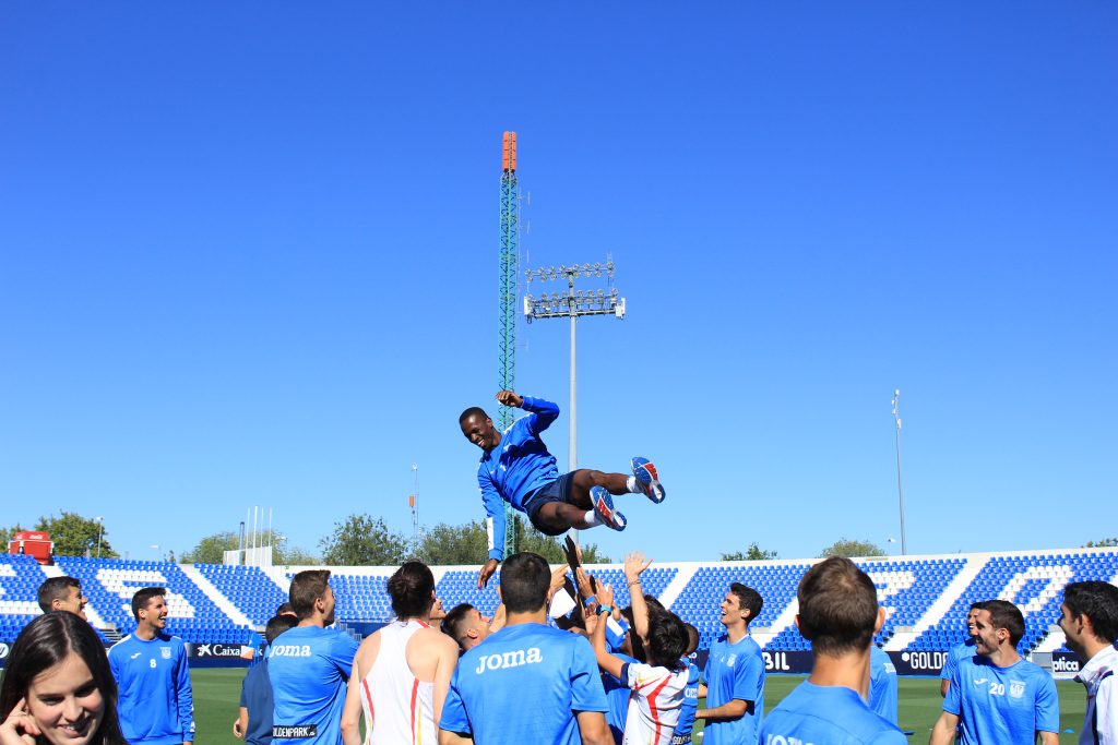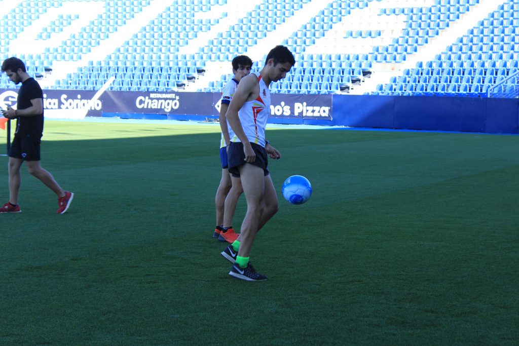 Los primeros en llegar fueron los integrantes de la FEDO, que hicieron de liebres para unos jugadores desubicados al comienzo de la prueba, pero con muchas ganas de divertirse. ‘Pichu’ Cuéllar, como el primero de la clase, guiaba a algunos de sus compañeros en busca de los marcadores. Claude Beavue correteaba por las gradas de Butarque con la sonrisa de ese niño que descubre un mundo nuevo. Dimitrios Siovas, que acudió a la sesión sin calzado para la prueba, daba vueltas sin saber realmente por dónde empezar.