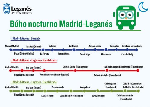 Las líneas serán la 802, 803 y 804. Mientras que la primera de ellas recorrerá Leganés teniendo su final de trayecto en Vereda de los Estudiantes, las otras unirán Atocha con Fuenlabrada pasando por nuestro municipio. Anoche, la línea inaugurado fue la 802, eligiendo su última parada como inicio de este nuevo recorrido. »