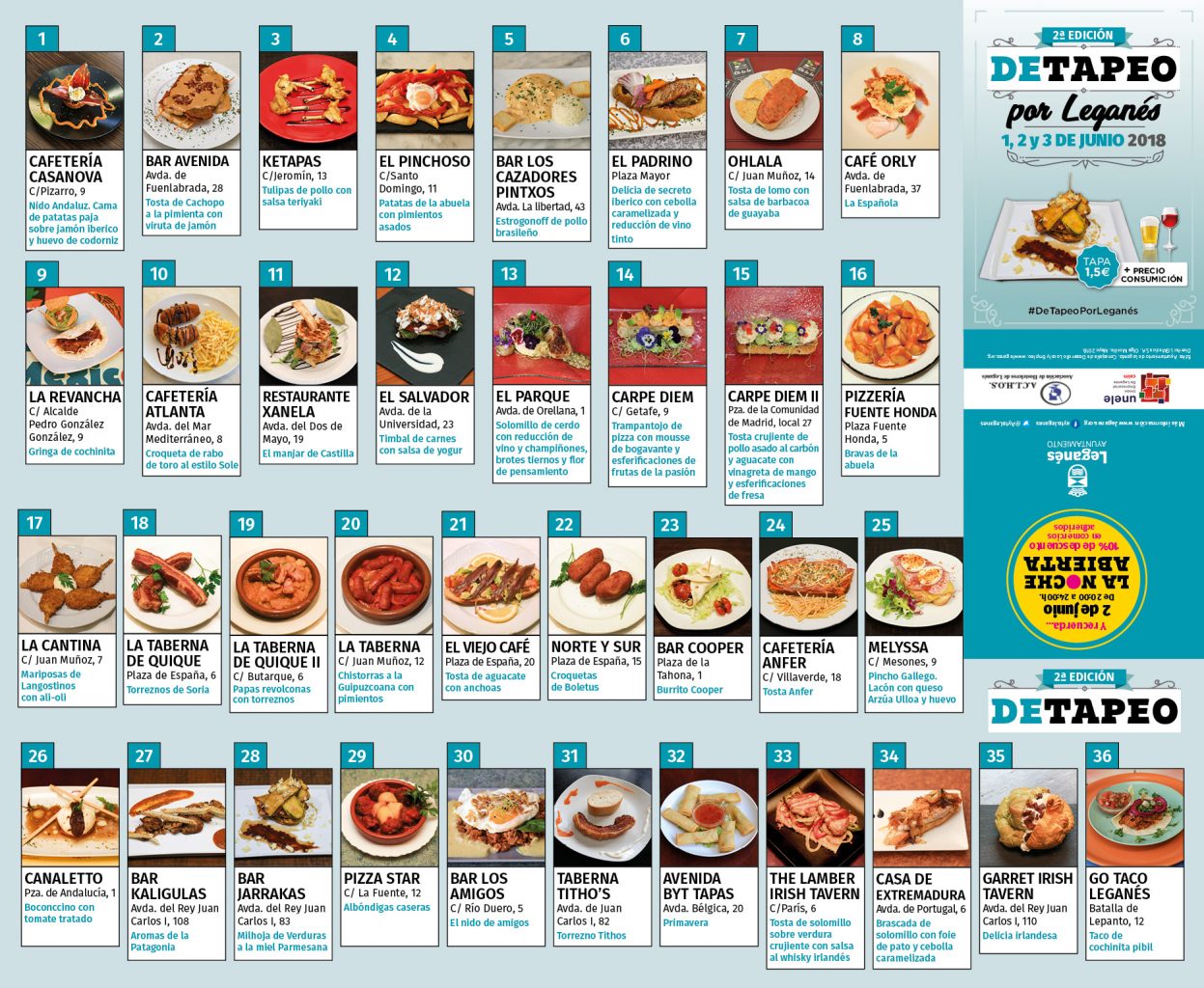 En total 11 bares y restaurantes más se suman a esta iniciativa comercial tras el éxito de 2017, cuando los establecimientos sirvieron cerca de 18.000 tapas. Para dar a conocer esta iniciativa y animar a los leganenses a probar las diferentes tapas, el Ayuntamiento ha editado un plano desplegable con la dirección ubicación en plano de los bares y restaurantes así como también las imágenes de las tapas que servirá cada uno de ellos.