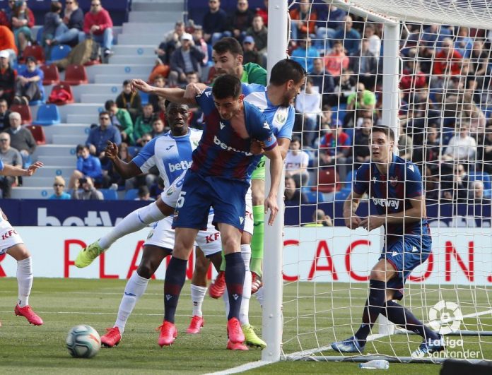 Una primera media hora fatĂdica condenĂł a los leganenses a la desesperaciĂłn en el Ciutat de Valencia. Dos golpes de Rochina y Roger en las primeras llegadas del Levante pusieron muy cuesta arriba las posibilidades de rascar algĂșn punto para sacar la cabeza del descenso. Guerrero y AssalĂ© no pudieron vivir un debut feliz en el que la presencia en el ĂĄrea rival llegĂł demasiado tarde.