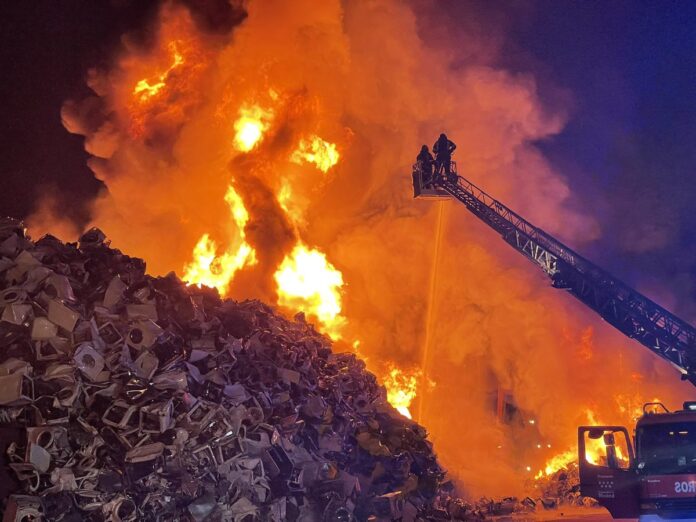 Más de 1.500 m3 de lavadoras que iban a ser recicladas se han visto envueltas en un incendio que los bomberos han tardado horas en poder sofocar. Policía Local investiga las causas