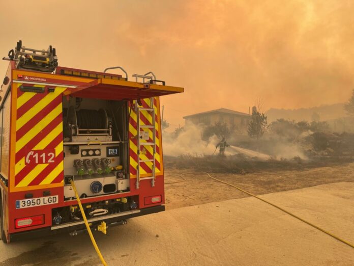 Cuatro dotaciones terrestres y un medio aéreo apoyan en las labores de extinción del mayor incendio de España este año. Ha afectado a más de 12.000 hectáreas