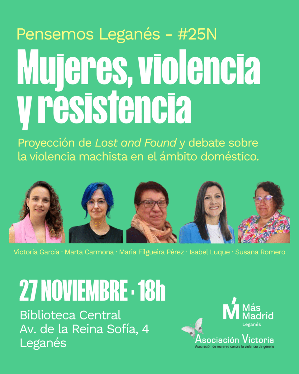 Tras la proyección, se abrirá un espacio de debate y diálogo con la participación de mujeres vinculadas al ámbito político, social y profesional, entre ellas Marta Carmona, diputada de Más Madrid en la Asamblea de Madrid; María Filgueira Pérez, psicóloga y presidenta de la Asociación de Mujeres contra la Violencia de Género; y Victoria García, concejala de Igualdad de Más Madrid Leganés.