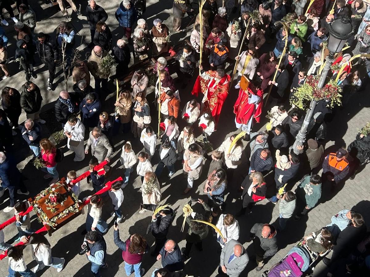 A las 11:00 horas, la jornada comenzaba con la misa oficiada por Pedro Merino, párroco de San Salvador, ante decenas de familias que sostenían palmas y ramas de olivo, en una de las imágenes más características del Domingo de Ramos.
