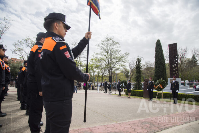 Tras pasar revista y unas palabras del alcalde de Leganés, Miguel Ángel Recuenco (PP), el Delegado de Gobierno, Francisco Javier Martín (PSOE), y el propio alcalde, han acompañado a sendos coronas de flores al solemne ritmo de “La muerte no es el final” y “Toque de oración”, tocado por la Banda de Música de la Policía Municipal de Madrid.