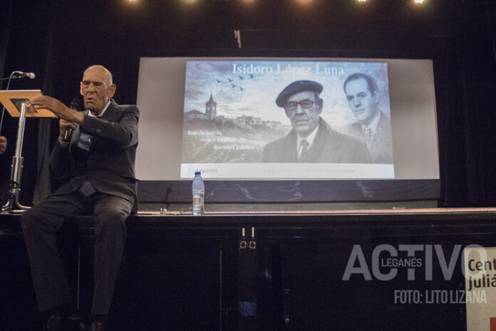 El Teatro del Centro Cívico Julián Besteiro de Leganés, cambia de nombre. Desde este 15 de abril se ha rebautizado como Teatro Isidoro López Luna, en honor al poeta que no se ha podido perder el evento: «este homenaje lo llevaré siempre en mi corazón«. Arropado por su familia, él mismo ha sido el encargado de desvelar la placa del nuevo nombre.