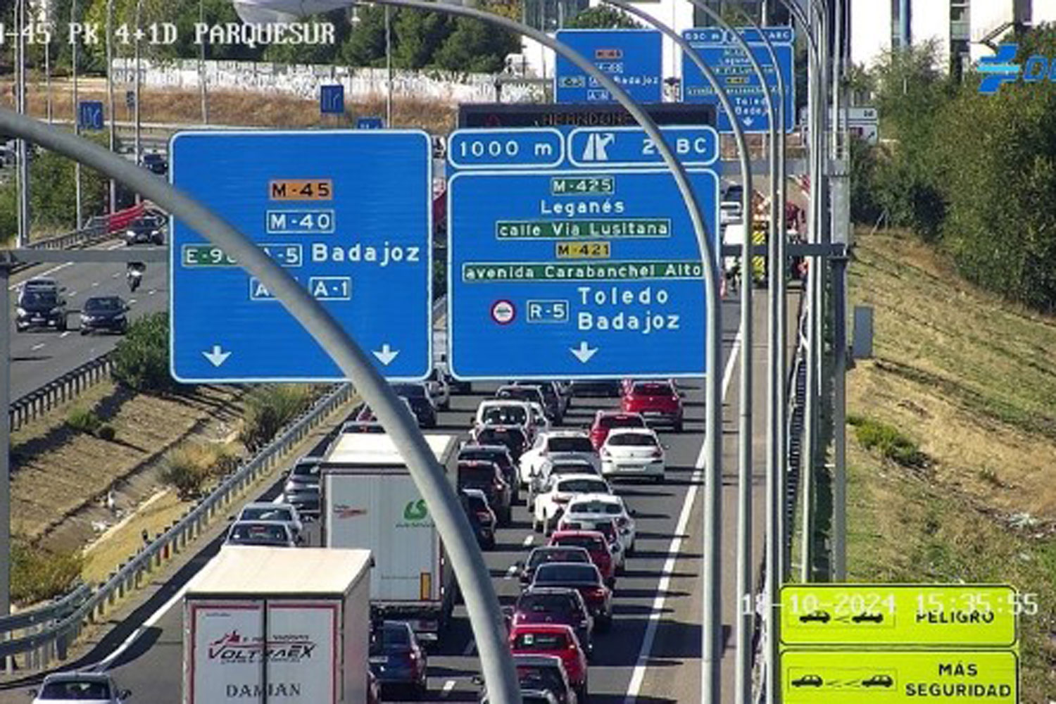 Un accidente en la M45 a la entrada de Leganés produce kilómetros de retención
