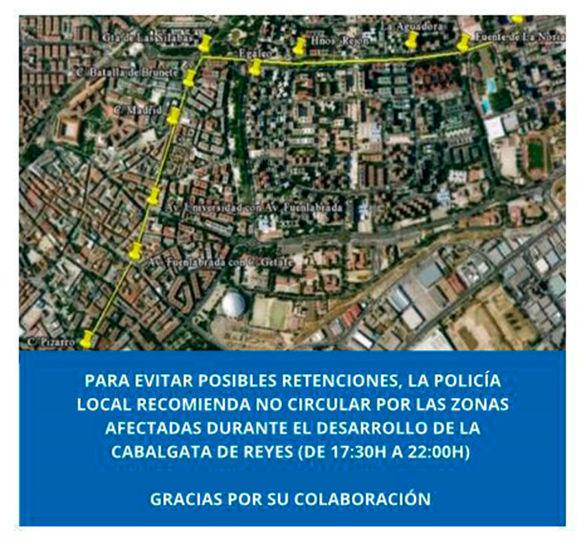 Cortes de tráfico en La Fortuna por la Cabalgata de Reyes 2026